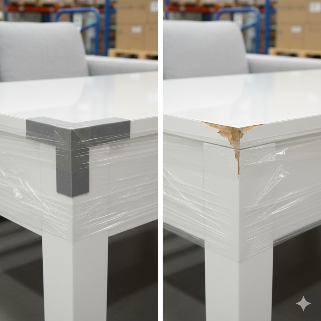 Trong ngành nội thất, các tình trạng như trầy cạnh sofa, sứt góc bàn ghế, móp tay vịn xuất hiện khá phổ biến. Nhiều xưởng đã quấn màng PE hoặc bọc carton bên ngoài nên cho rằng sản phẩm đã được bảo vệ đầy đủ.